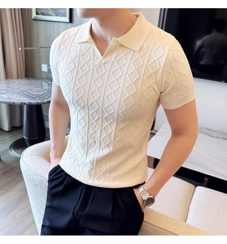 Elegant Textured Knit Polo Shirt