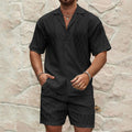 Designed for the modern man who values both style and comfort, this coordinated ensemble features a relaxed Cuban collar shirt paired with matching lightweight shorts—perfect for vacation getaways, beachside lounging, or elevated casual occasions.