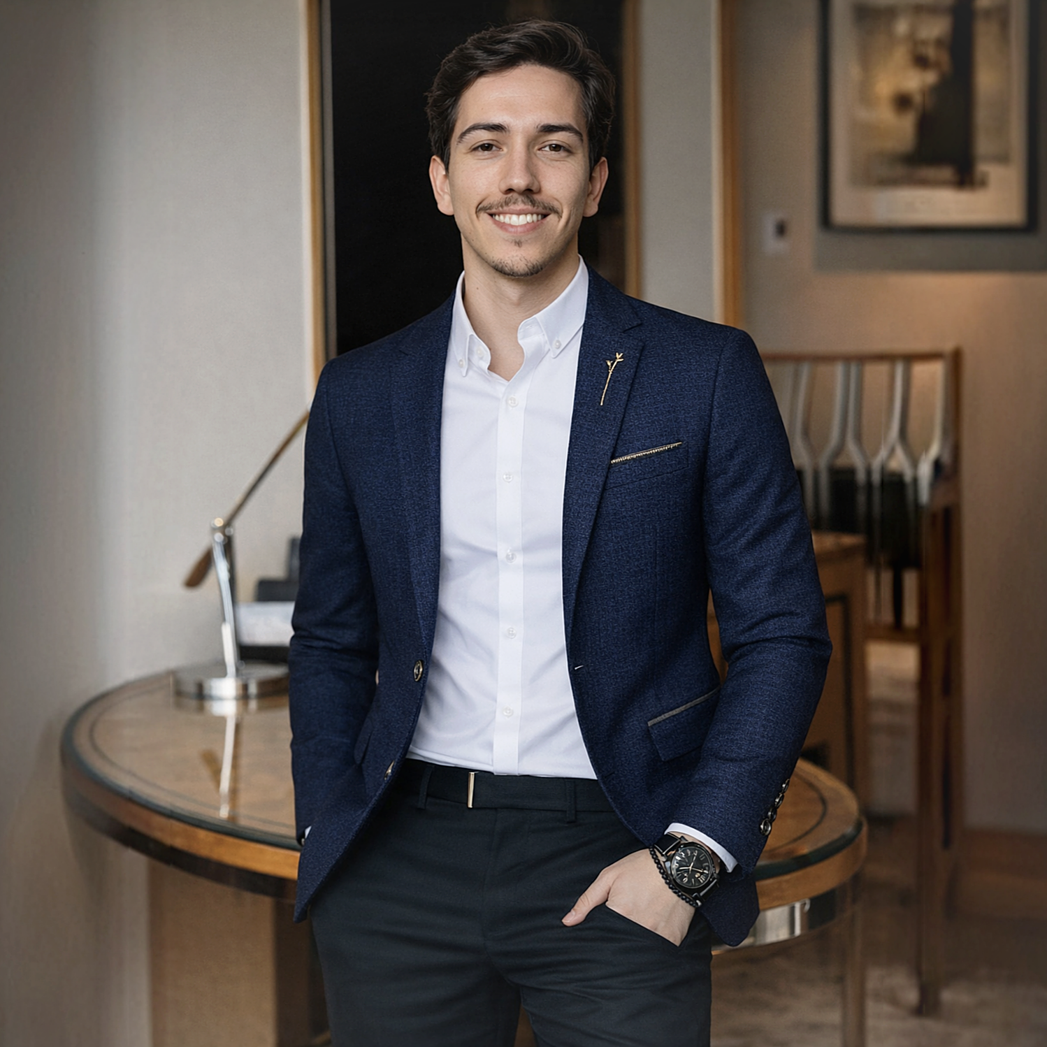 This tailored slim-fit blazer is designed for men who move between meetings, dinners, and everyday life without changing their mindset.