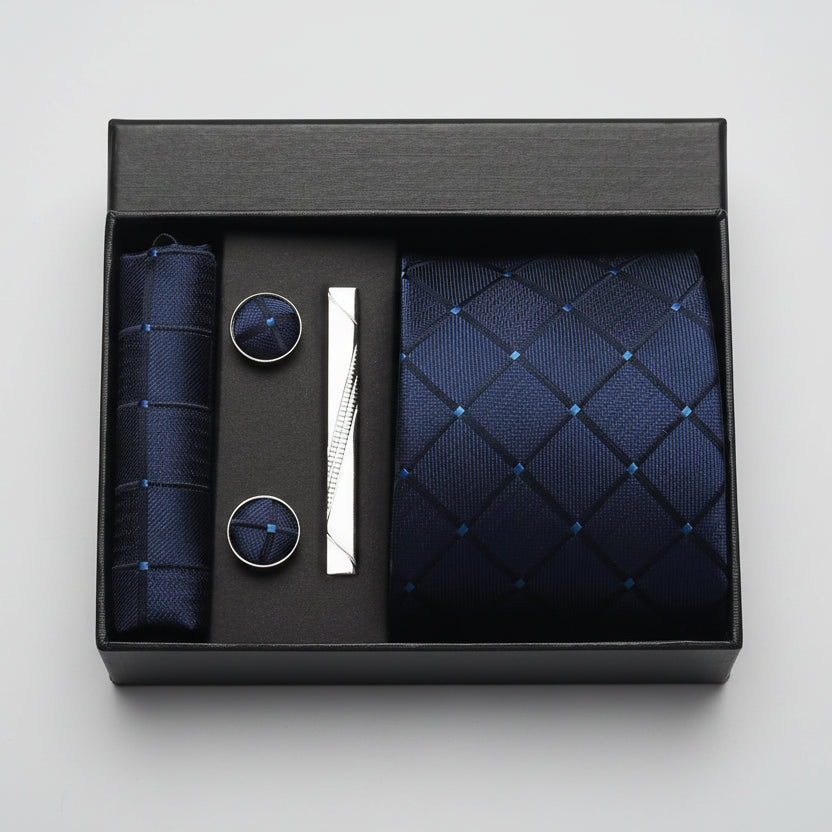 (include 1necktie&2cufflinks&1pocket squre&1Gift box&1 Tie clip)