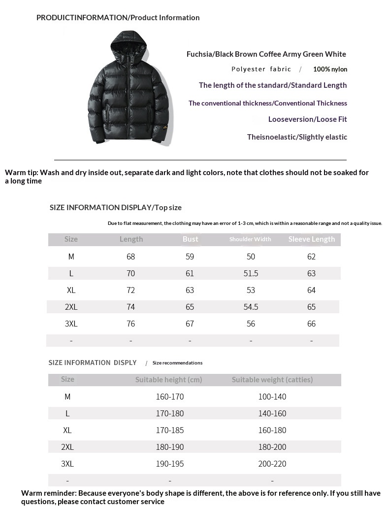 Size: M [100-140], L [140-160], XL [160-180], 2XL [180-200], 3XL [200-220]